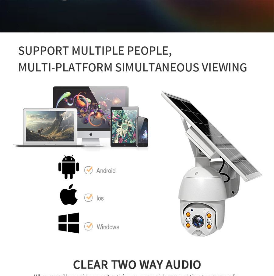 Dan il-Kameras tas-Sigurtà tad-Dar Solari bi prestazzjoni tajba għat-temp IP66, din il-kamera solari wifi mingħajr fili tista 'tipprevjeni l-ilma milli jidħol fil-kamera u tiflaħ firxa ta' temperatura minn -20 grad sa 50 grad, li kapaċi jiflaħ kundizzjonijiet aktar diffiċli u estremi bħal riħ, xita, borra. Agħti s-sigurtà tad-dar tiegħek kontinwa 24 siegħa kuljum sorveljanza bil-vidjo